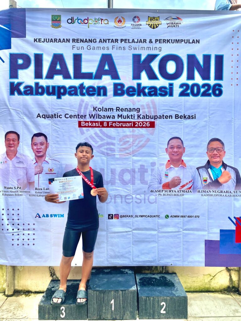 Prabu Sungging Prabangkara Raih Juara 3 Lomba Renang Gaya Bebas 50 Meter di Ajang Perlombaan Piala KONI Kabupaten Bekasi