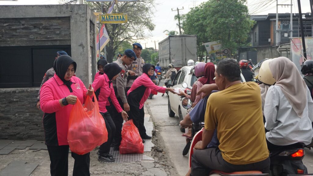 Tebar Kebaikan di Bulan Ramadan, Brimob Batalyon D Pelopor dan Bhayangkari Bagikan Takjil di Jalan Raya Tegal Danas