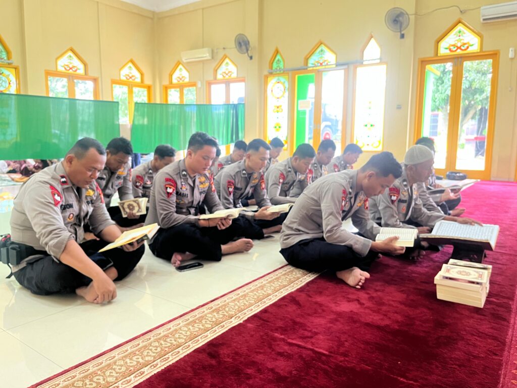 Tingkatkan Keimanan di Bulan Ramadhan, Personel Batalyon D Pelopor dan Bhayangkari Gelar Tadarus Al-Qur’an