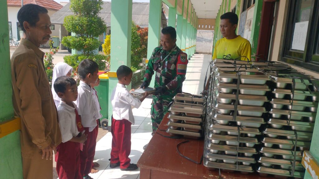 Insidecikarang.com || Kab.Bekasi – Babinsa Koramil 03/Cabangbungin Kodim 0509/Kab.Bekasi turut serta dalam pendampingan pendistribusian Makan Bergizi Gratis (MBG) yang diselenggarakan oleh Satuan Pelayanan Pemenuhan Gizi di Wilayah Kecamatan Muaragembong, Kabupaten Bekasi. pada Senin (13/10/2025).