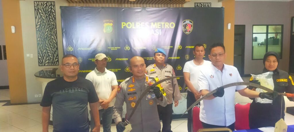 Insidecikarang.com || Kab.Bekasi – Polres Metro Bekasi menggelar konferensi pers terkait pengungkapan kasus pengeroyokan yang mengakibatkan seorang remaja berinisial FA meninggal dunia. Kasus ini juga melibatkan dugaan pelanggaran UU Perlindungan Anak dan kepemilikan senjata tajam tanpa hak, peristiwa terjadi di depan Toko AIMA, Jalan RE Martadinata, Karang Baru, Cikarang Utara pada Sabtu (18/10/2025) sekira pukul 02.30 WIB.