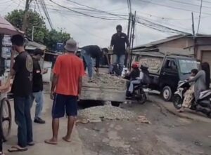 Insidecikarang.com || Kabupaten Bekasi – Ketua Forum Wartawan Jaya Indonesia (FWJI), Siti Mariam, bersama jajaran pengurus dan anggota FWJI menunjukkan kepedulian sosial dengan melakukan aksi perbaikan jalan rusak di Desa Kertamukti, Kecamatan Cibitung, Kabupaten Bekasi, pada Sabtu (10/01).