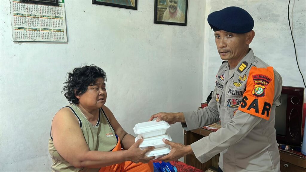 Setelah proses memasak selesai, makanan kemudian dibungkus dan selanjutnya didistribusikan kepada warga. Pendistribusian dilakukan bersama personel Polres Metro Bekasi dengan sasaran warga yang terdampak banjir di sekitar lokasi kegiatan.